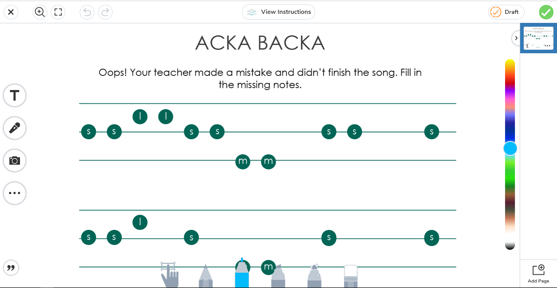 It also has some powerful applications for virtual learning! Here’s a sequence of learning activities for la in SLSM using the song, Acka Backa. Each activity is designed to correlate with the teaching strategies in The 2019 - 2020 Planning Binder.